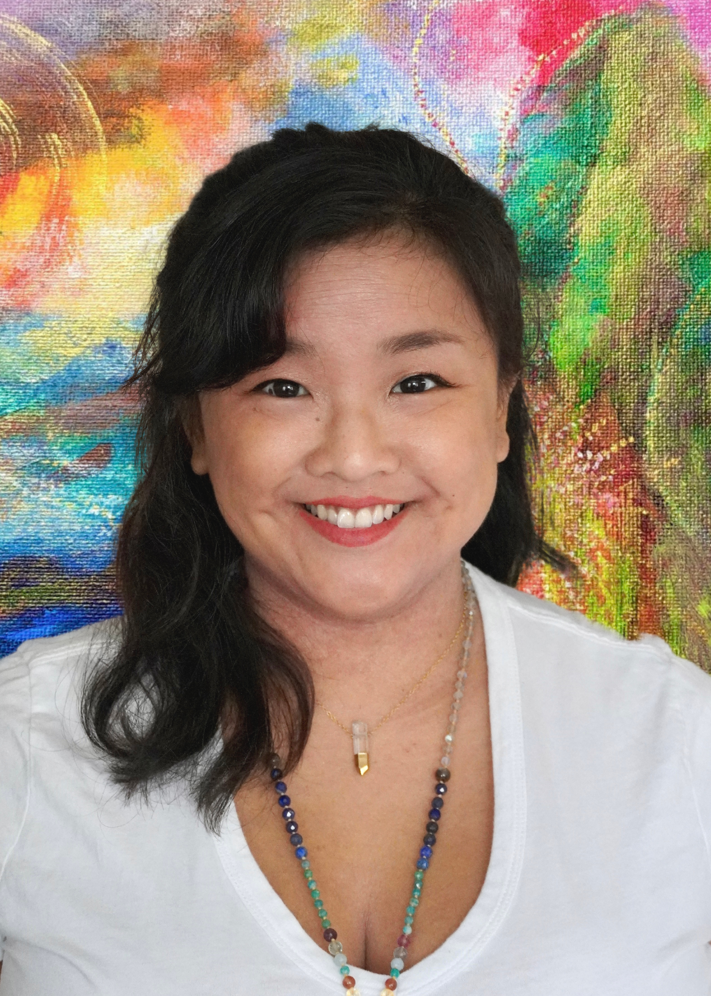 Emi Kalani`ōpu`u Omori is an artist, energy worker and facilitator of sound journeys. As a sensitive being, Emi has studied the subtle shifts in energies by learning frequency ecology through oli/Hawaiian chant (Kekuhi Kealiikanakaole), astrology (Rakaiel Webb), and energy work (Sacred Path Healing School). After the death of her daughter Kalaniānuenue (Nuggy) in 2018, she has stepped further into her calling of helping others in these transitional times through her energy work and artistic endeavors. Emi enjoys translating the loving reciprocity of her human existence into sacred adornments for time through music, for the body through jewelry, and for spaces through painting, photography and collaborative work with her husband Makali`i.